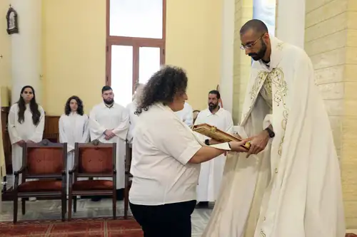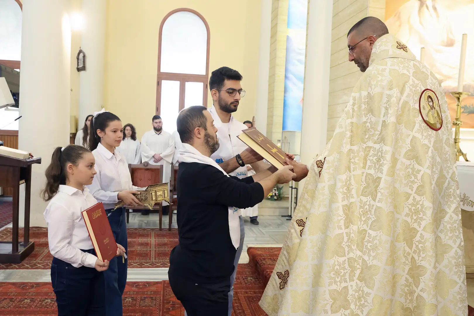 في مُستهلّ القدّاس وشِّحَ المذبح بحُلّة العيد وتم رفع شعار الرعيّة للسنة الجديدة "رجاؤنا لا يَخيب" (رو ٥/٥) الذي شرحه خادم الرعيّة خلال كلمته الروحيّة شاكرًا كُل من يعمل من أجل بنيان الرعيّة وتمجيد اسم الله من خلال خدمته ورسالته.